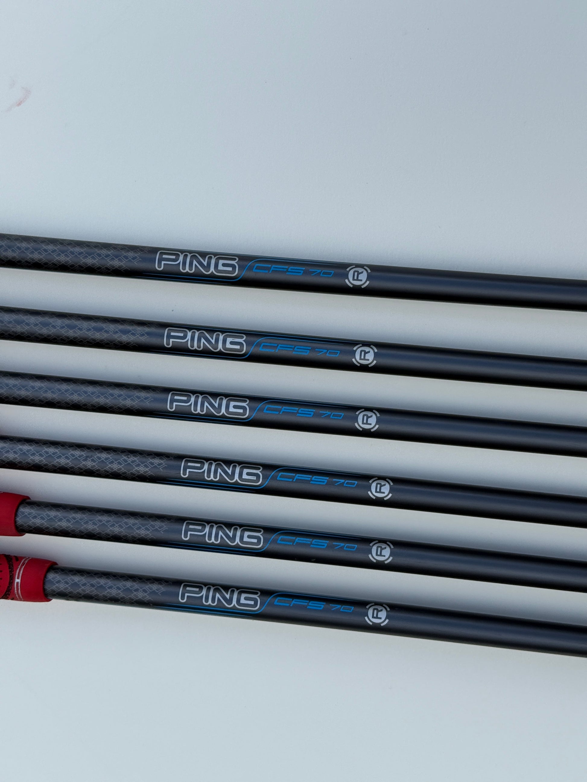 Condition 8/10 - Irons are in average condition for the age. The faces and soles have minor scratches and wear for the age. The clubs have Ping CFS 70g Regular Flex Graphite Shafts and Golf Pride New Decade Multi Compound Midsize Grips